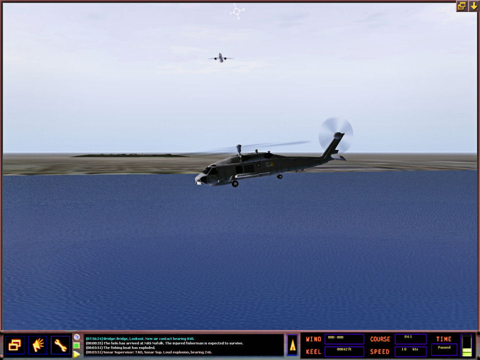 Our SPS-49 air search radar immediately detects the helo. Note the numerous surface contacts.
