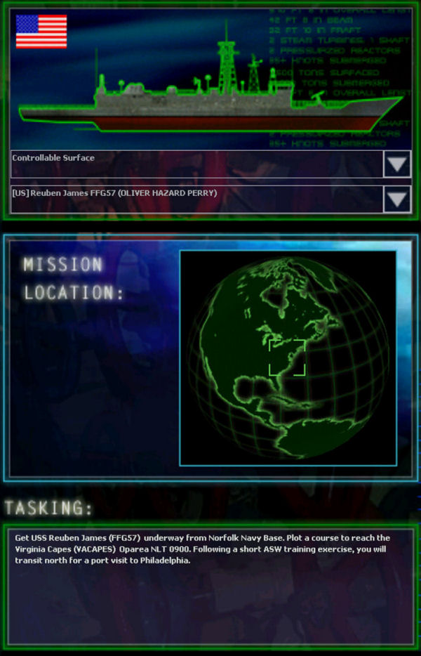 This mission is pretty simple: Leave port without hitting anything and transit to the local OPAREA for ASW exercises.
