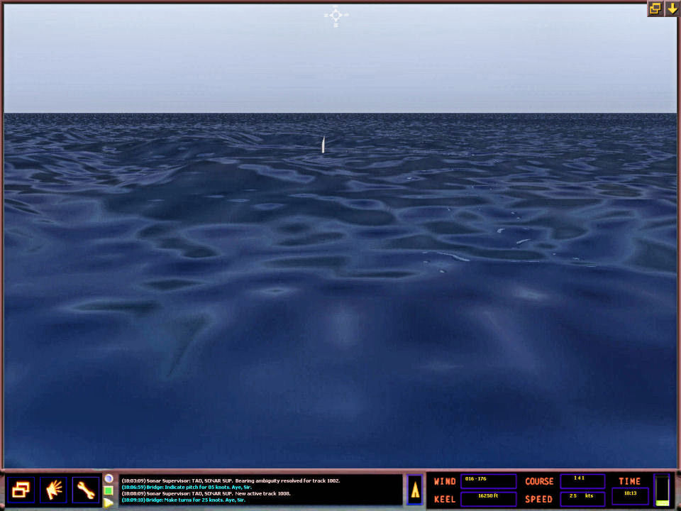 Her battery nearly drained, the Foxtrot comes back to periscope depth.
